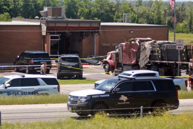 The truck slammed into the front entrance of the building in the rural town of Brenham around 10:41 a.m.