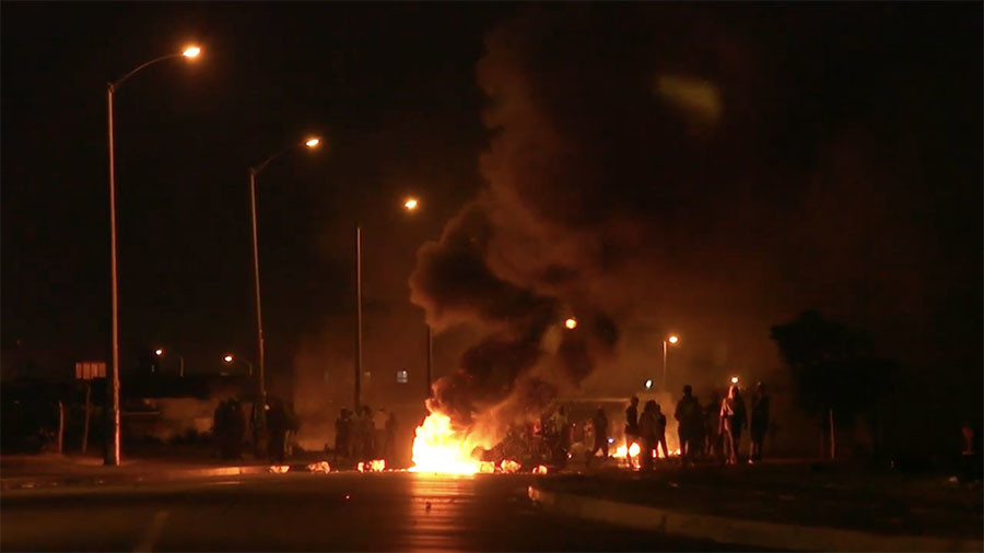 However, violence broke out as authorities destroyed these structures Monday night, with residents smashing a local liquor store and setting fire to tires and nearby vegetation. Footage from the scene shows gunfire ringing out as police confront protesters.