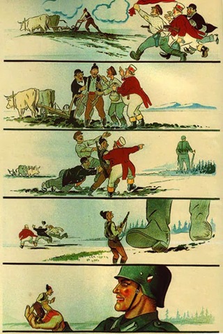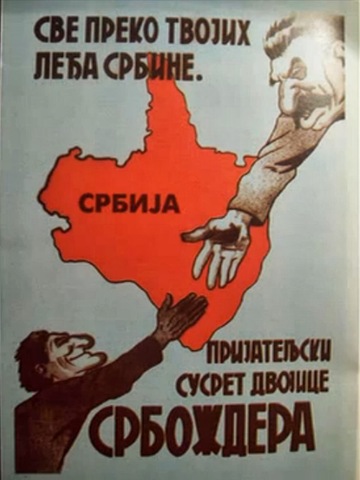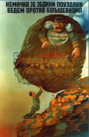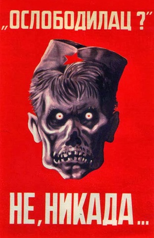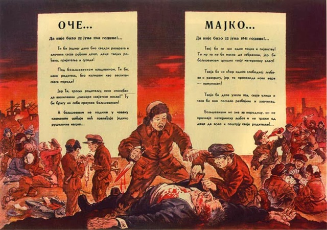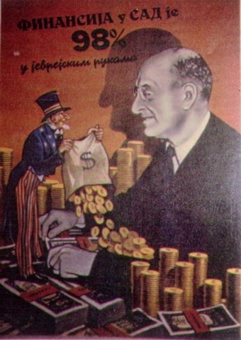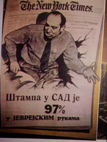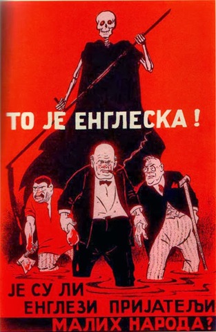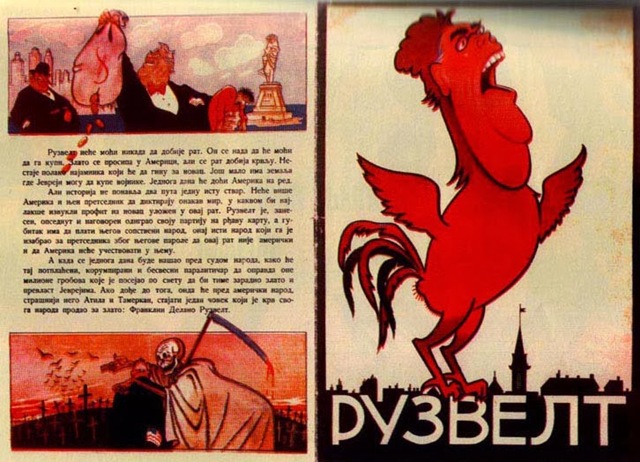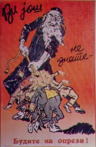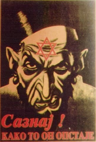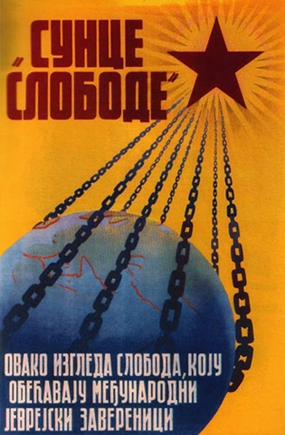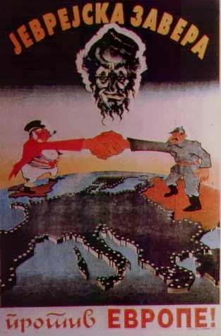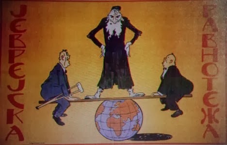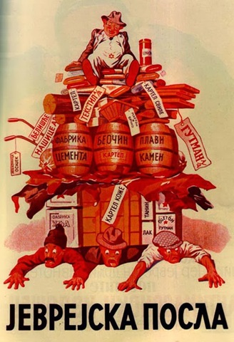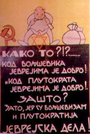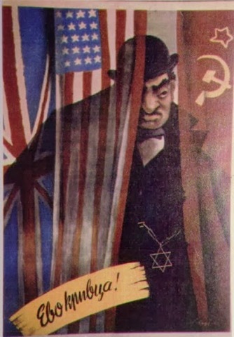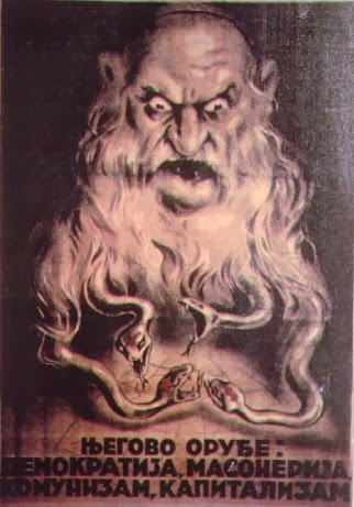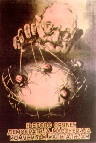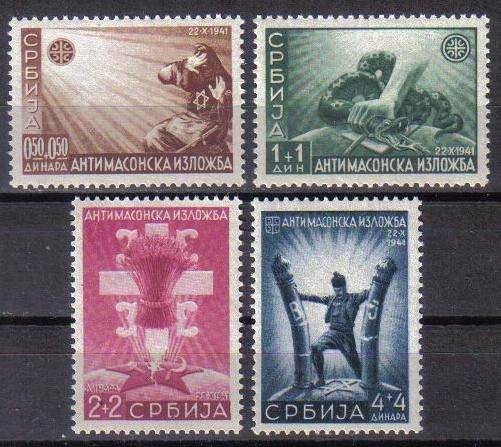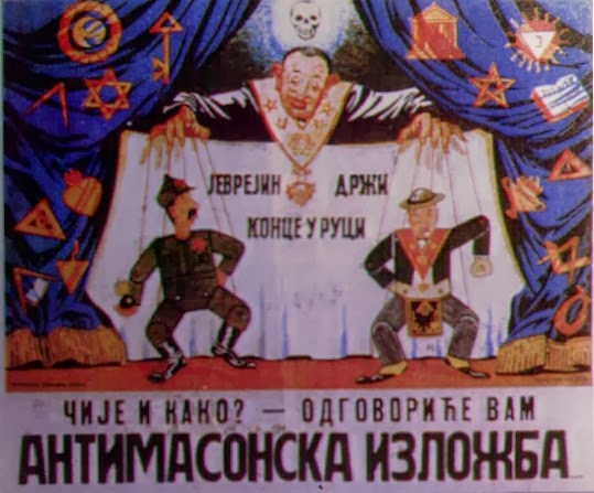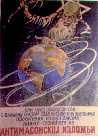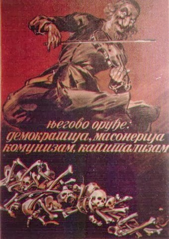 When the Kingdom of Yugoslavia was invaded by National Socialist Germany and its Axis allies, it was split into several sections, one of this section which was under German control was known as “Nedićeva Srbija” (Nedić’s Serbia). Dimitrije Ljotić, a Serbian nationalist and Jew-wise person, cooperated with the German administration for the common struggle against the international Jewish elite, despite the fact that the Serbian nation suffered through the anti-Serb policy of the Axis powers (see: Hermann Neubacher and his Balkan adventure). Dimitrije Ljotić and his followers were members of the Nedić government and propagated for the truth in order to expose the international Jewish elite. They opened the “Antimasonska izložba” (Grand anti-Masonic Exhibition) and published stamps and posters, mainly about the Judeo-Masonic-Communist menace (some of these posters contain negative propaganda against the Chetnik leader Draža Mihailović. He was neither a traitor nor an agent, it was the invasion and occupation of Kingdom of Yugoslavia and the negative treatment of Serbs that forced him to fight against against the occupiers on the side of the western Allies. He fought against the communists as well).