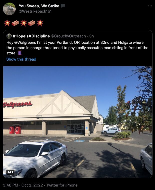 That’s why Antifa is so popular. They promote homeless people interfering with people’s business.