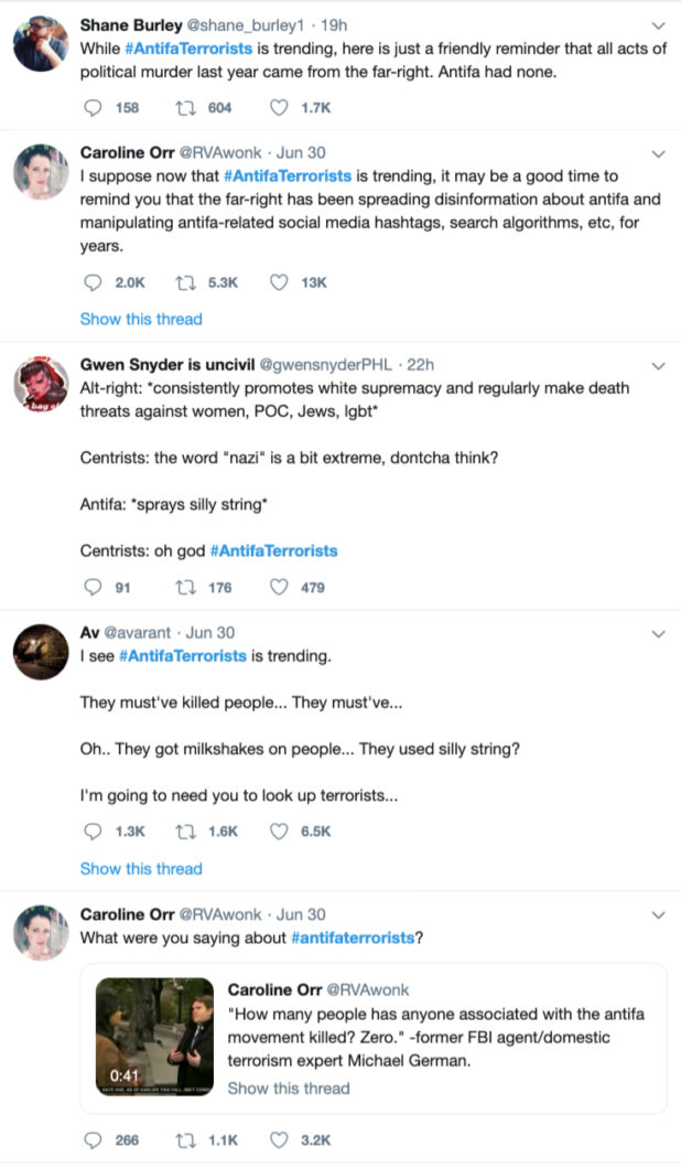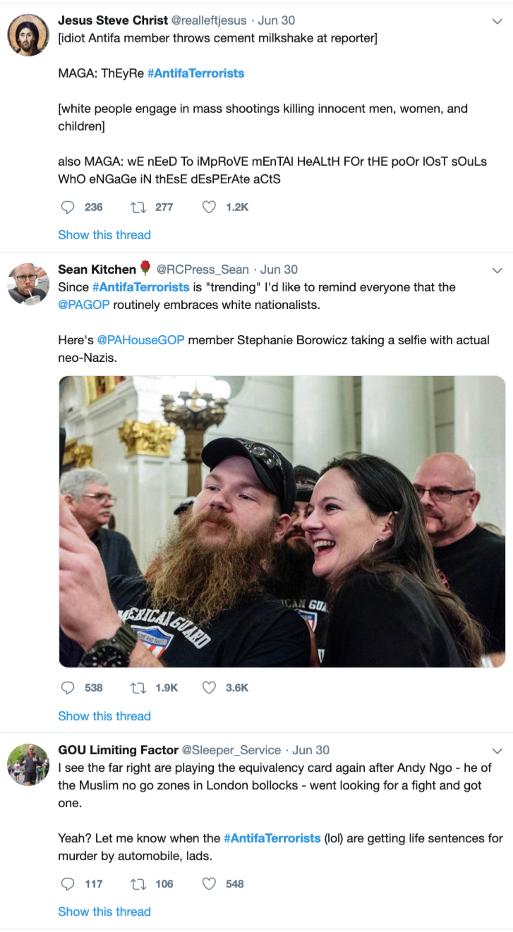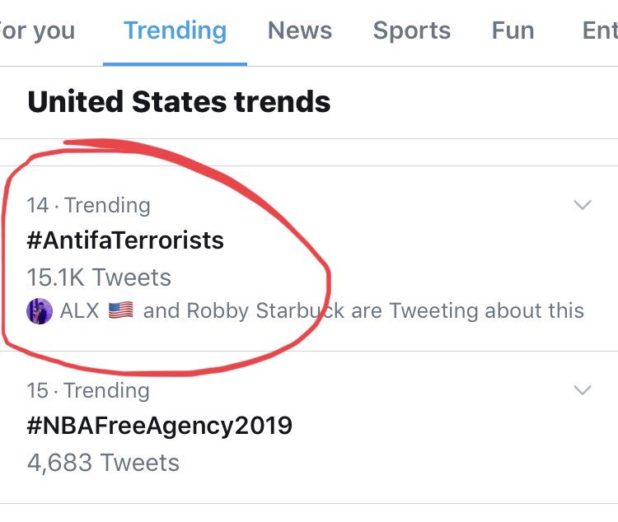 And #AntifaTerrorists is trending on Twitter.