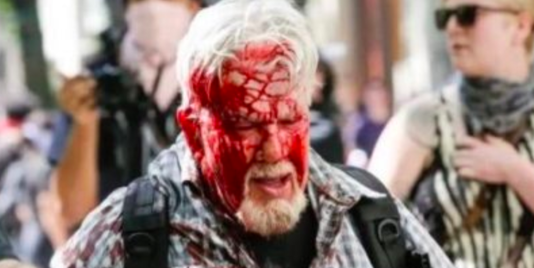 Here’s a video from the same Portland event Andy Ngo was attacked at showing an old man getting beaten with a crowbar and punched by a crowd of people.