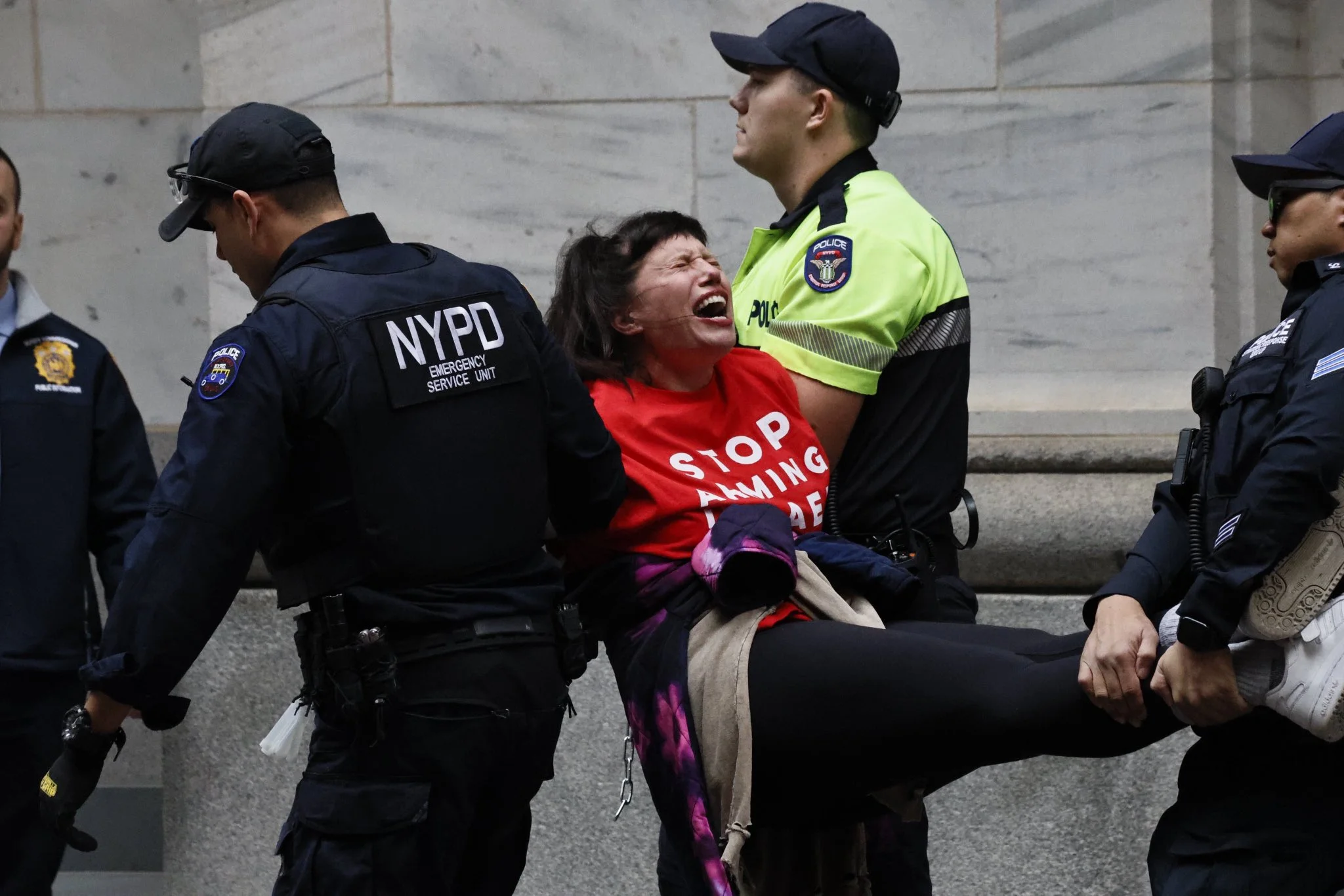 HAPPENING NOW: Police are dragging Jewish protesters by their arms and legs as they refuse to leave the global epicenter of capital on Wall Street, saying there can be no business as usual while the US arms Israel and profits from genocide. pic.twitter.com/lMbA8ng1rF