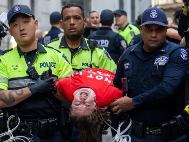 It was a “sit-in.” They were not even standing up. But the city of New York, like the US federal government, have declared that any and all protests against Israel are illegal.