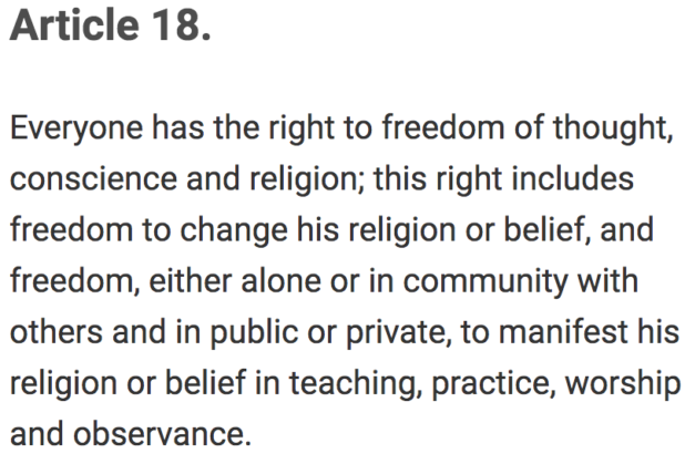 I don’t particularly care what the UN has to say about any particular issue, but the fact is that in 1948, this global organization which was intended to become a world government established in one of their founding documents that people have a right to freedom of thought and freedom of speech, and they have since revoked that right completely.