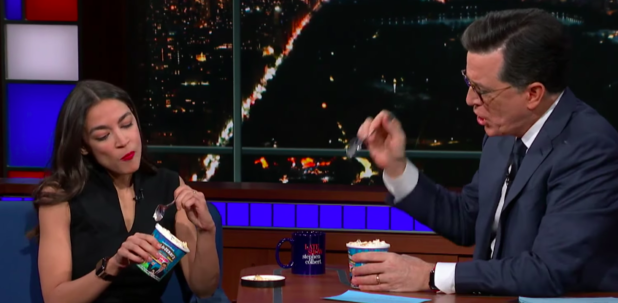 Stephen Colbert – who is a lover of fat women and a Feeder – handed her a tub of ice cream and said: “don’t stop now, princess.”