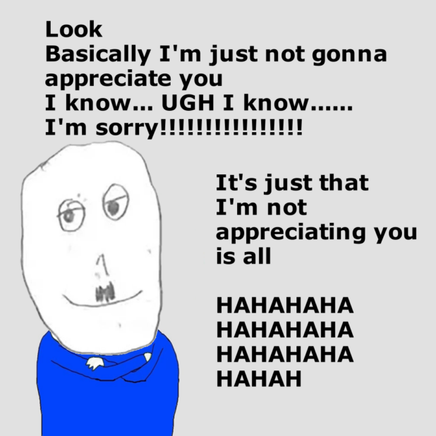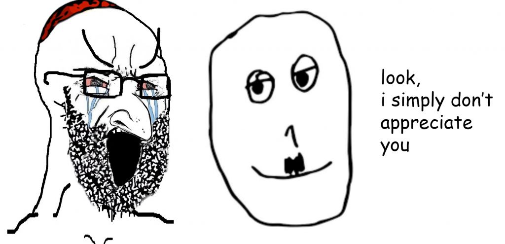 Along with demanding appreciation, Jews are going around the internet and falsely claiming that the Hitler face, widely being called “Smugler,” is not funny. However, these Jews have been unable to thwart the collapse of appreciation.
