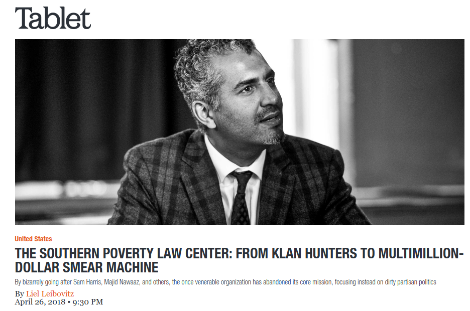 Okay, so Sam Harris is one data point. What other examples of SPLC “wrongdoing” are Tablet concerned with?