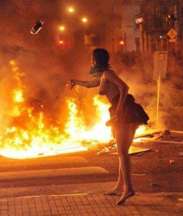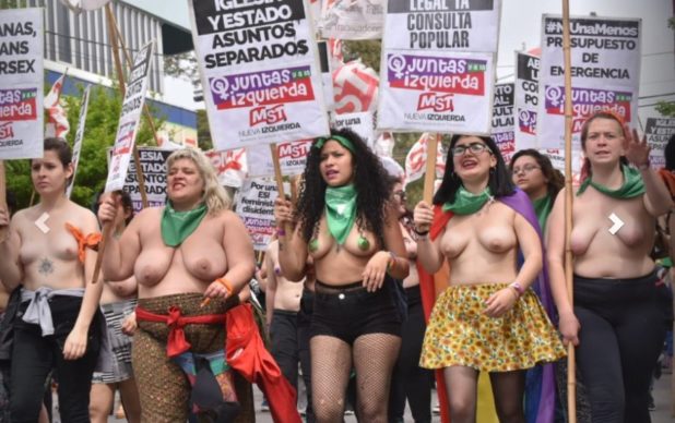 Empowered womyn were seen marching through the streets half-naked to protest being thought of as sexual objects.