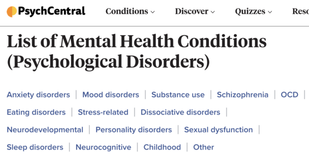 If you search “list of mental illnesses,” this is one of the first results: