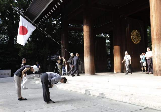 Prime Minister Shinzo Abe, whose hawkish views have raised concerns in the region, did not visit the shrine on Thursday’s anniversary of the war’s end, but had an aide present an ornamental offering bought with his own money. He also laid flowers at a national cemetery dedicated to more than 352,000 unidentified war victims.