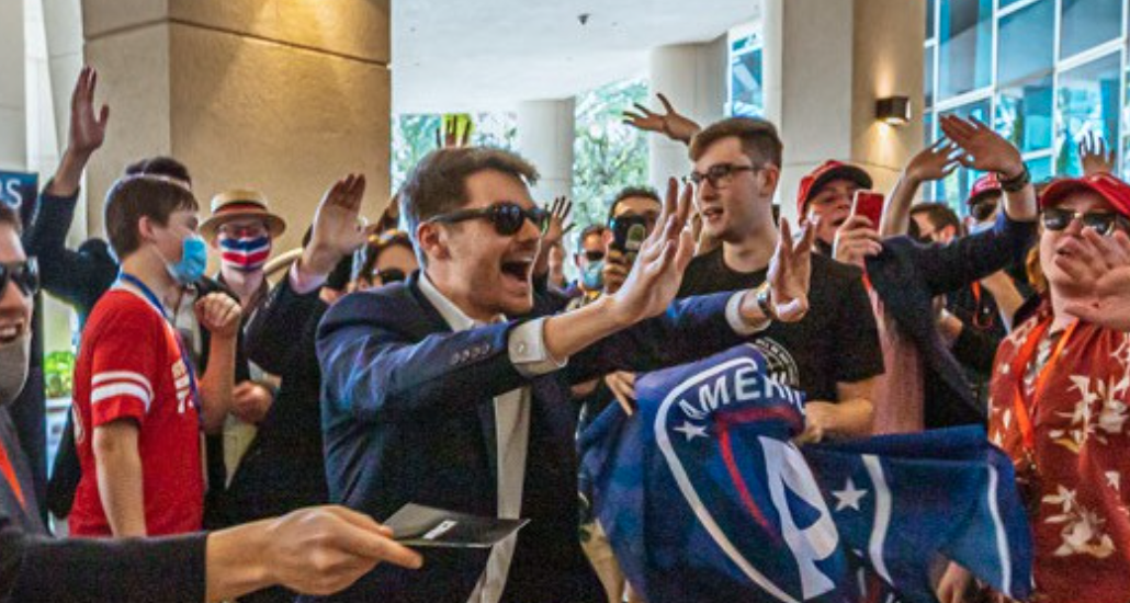 Our photog @davedeckerphoto caught Nick Fuentes at #CPAC, stumping for @AmericaFirstPAC: “At AFPAC, we don’t wear masks. At AFPAC, we don’t have homosexuals speaking on stage.” pic.twitter.com/nrFx8BtF05