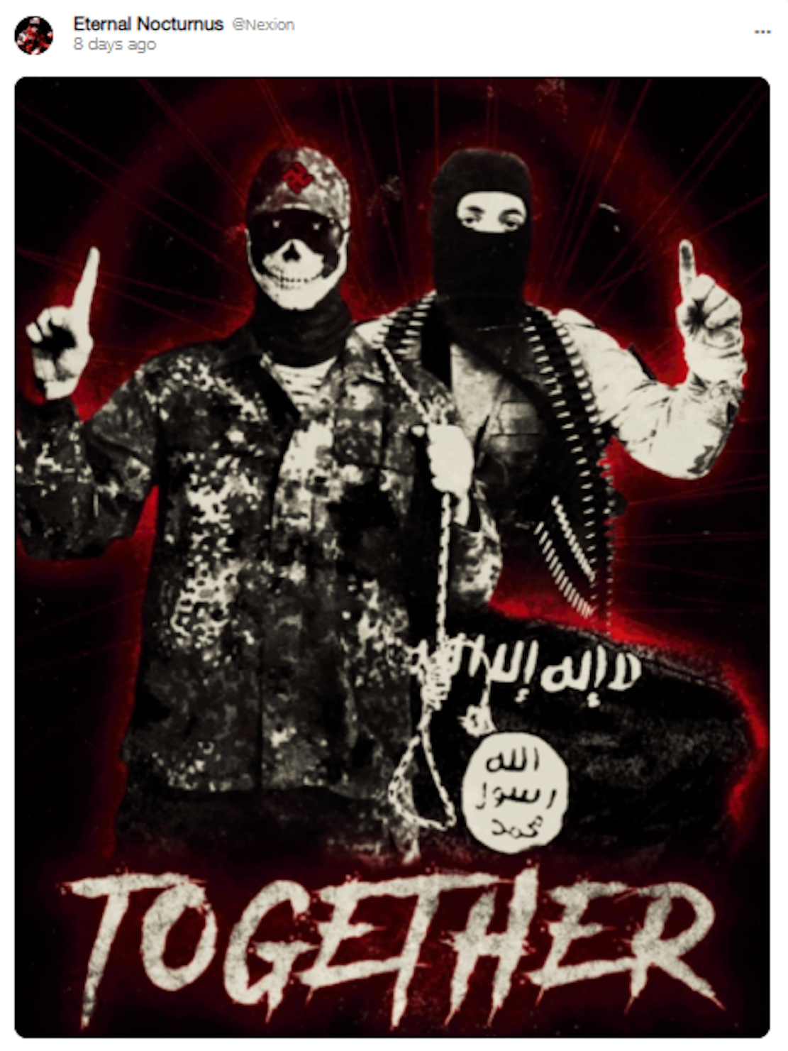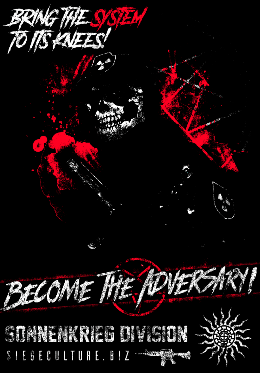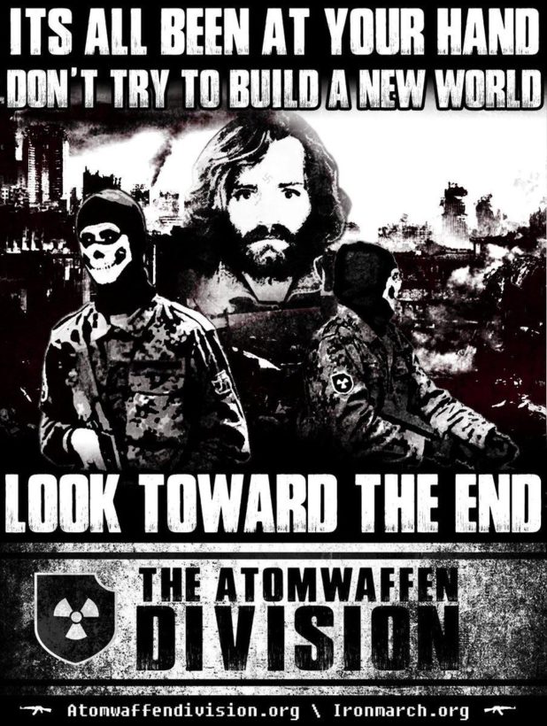 This is a group that is part of the “Atomwaffen network of satanic skull mask terror groups,” which use an edgy 2016 aesthetic on their ads and talk about doing terrorism. They are involved in Marilyn Manson type teen satanism and want to kill people to get magical powers from Lord Beelzebub.
