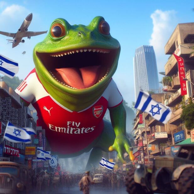I wish a gigantic frog in an Arsenal jersey would rampage through Tel Aviv.
