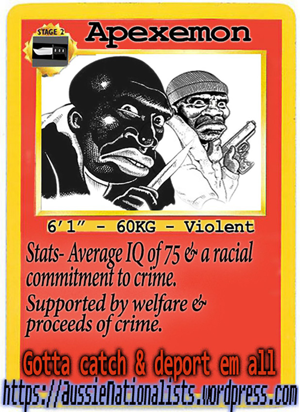Seriously, though, these anti-White messages work to our advantage, since they make everyday Whites hate coloreds even more than they already do. After all, surely even the most apathetic Australian must be thinking, “Who do these monkeys think they are?” when reading about this stuff these days.