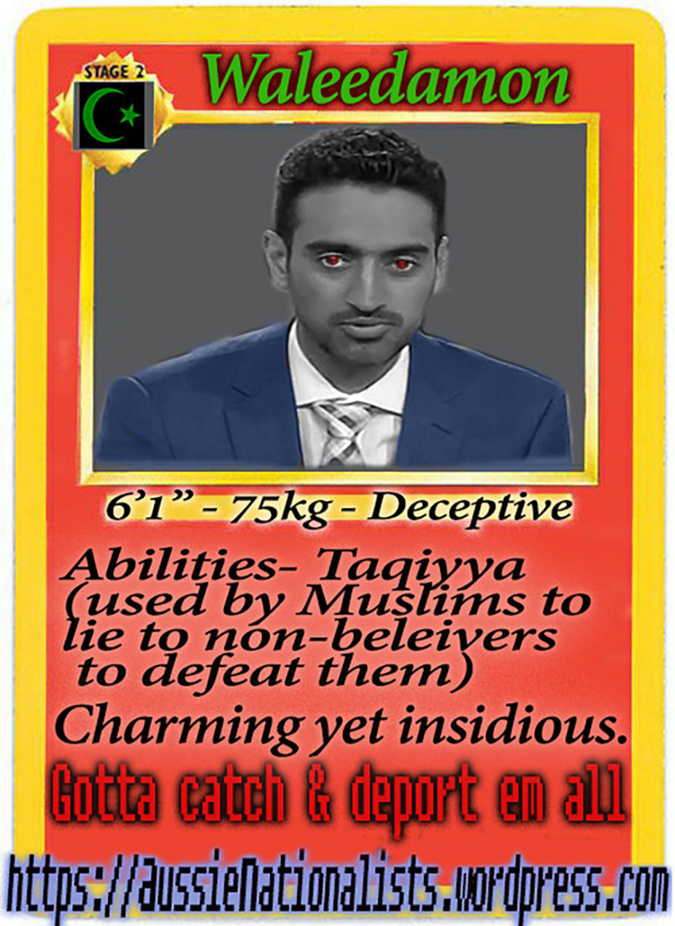 Waleed Aly’s poster. This one is very effective. It’s impossible to understate the importance of familiarizing people with “Tayiqqa,” since it’s the biggest weapon in the Moslems’ conquest agenda (other than machetes and nail bombs, I guess).
