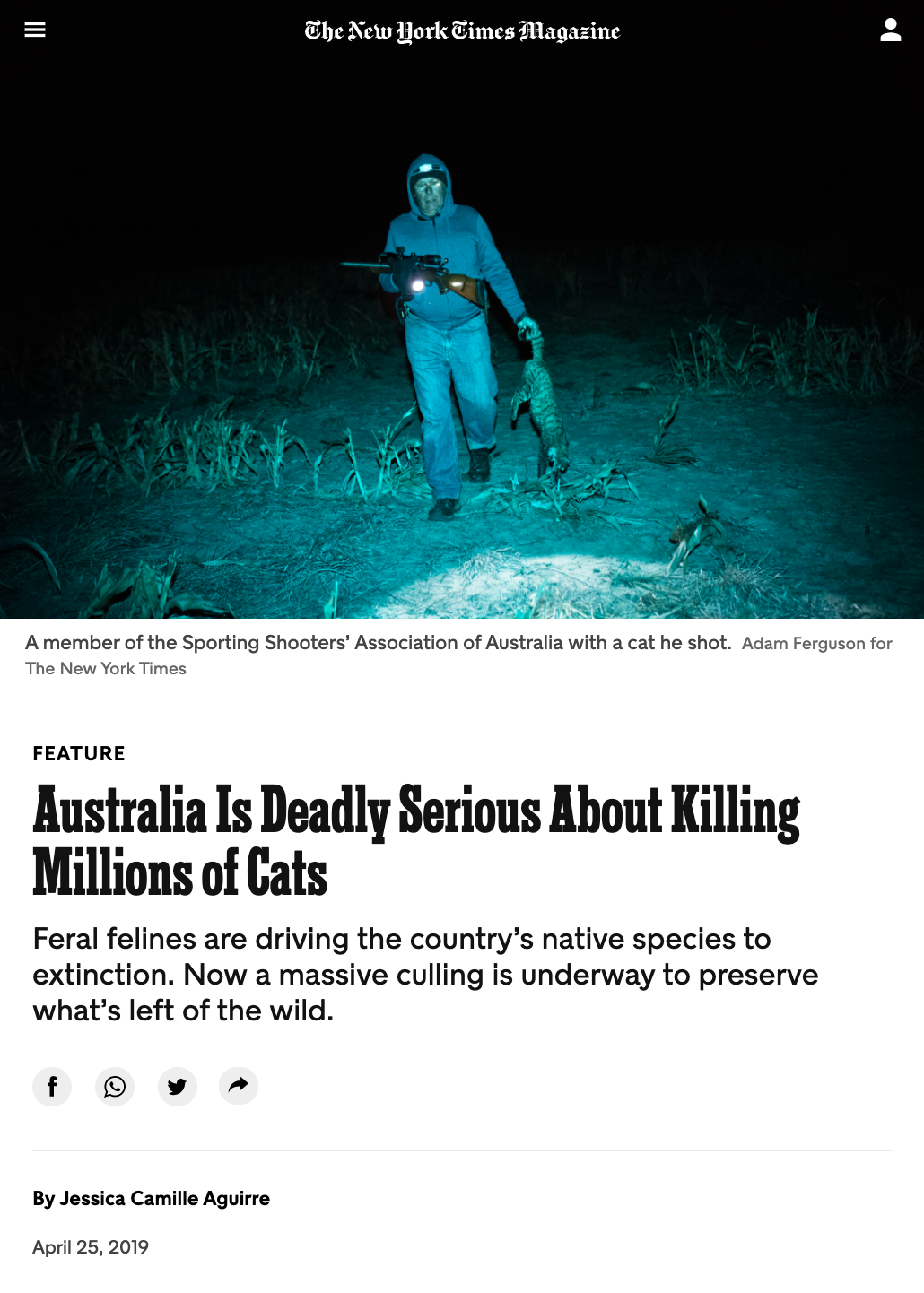 They are at war with nature, at the same time that they hide behind claims of preserving the natural order. Nature fixes itself. No, domestic cats are not native to Australia, but they’ve been there for hundreds of years. They struck a balance when the white man came and killed off various other predators. The “endangered species” were not important for any reason. If it was a matter of preserving the genetics of the species, they simply could have put them in a zoo.