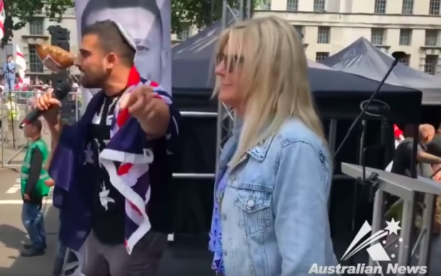 Here she is with some sandnigger Jew protesting in support of Tommy Robinson.