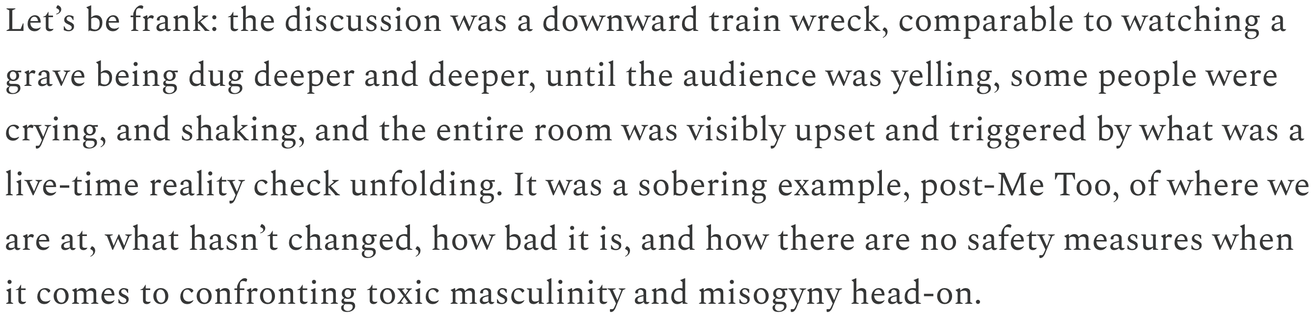 Extract from her Substack article on the subject, where she essentially makes it sound like she just survived a terrorist attack