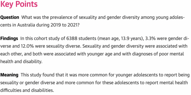 “We need child health policies that provide inclusion and support of diverse gender identities and diverse sexualities from a young age,” said the study’s lead author, Dr Jennifer Marino, a senior research fellow at the University of Sydney. “School and health settings particularly need to be safe spaces for very young adolescents.”