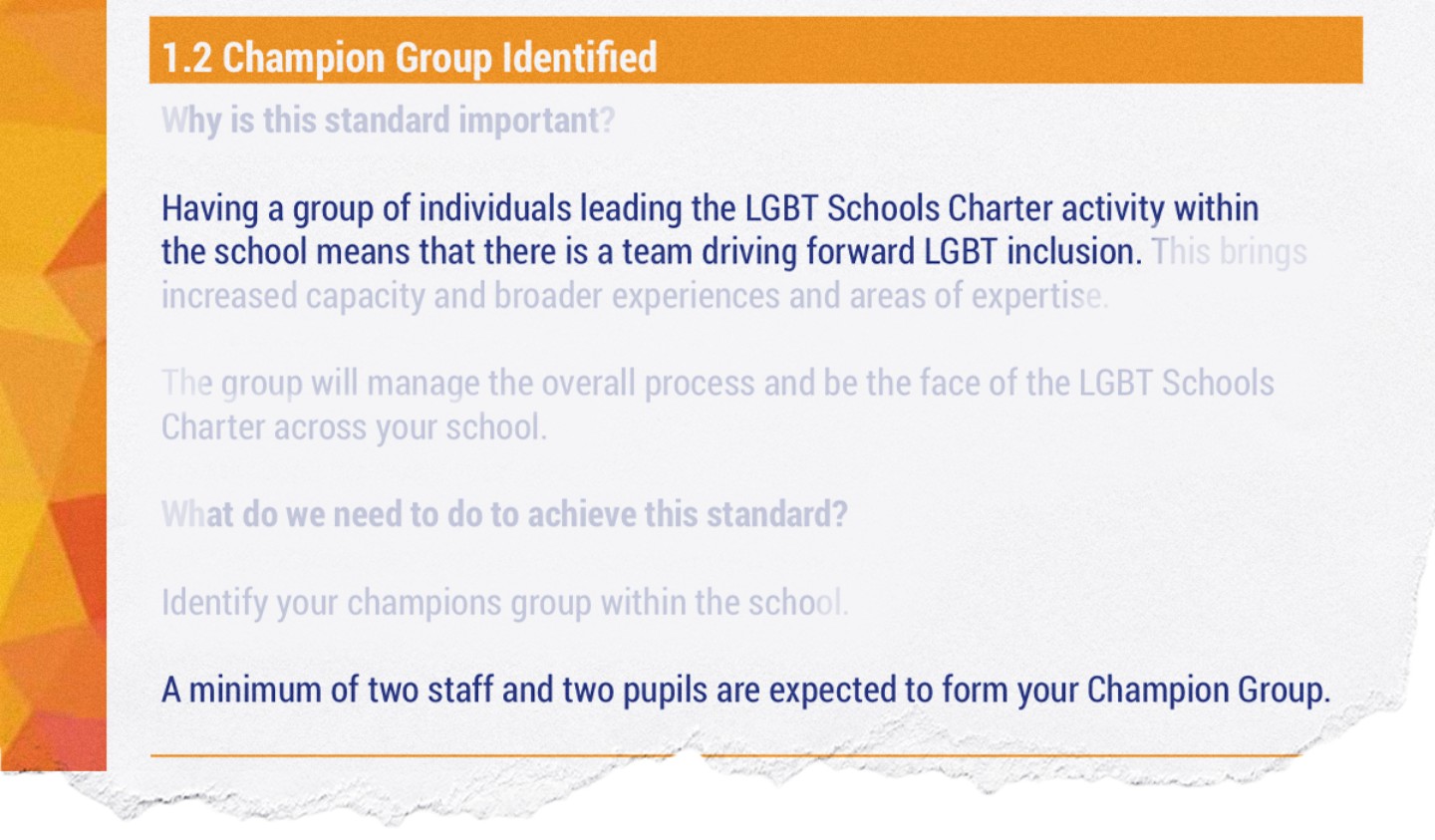 Schools opting into the scheme must appoint at least two pupils and two members of staff as “LGBT Champions”.