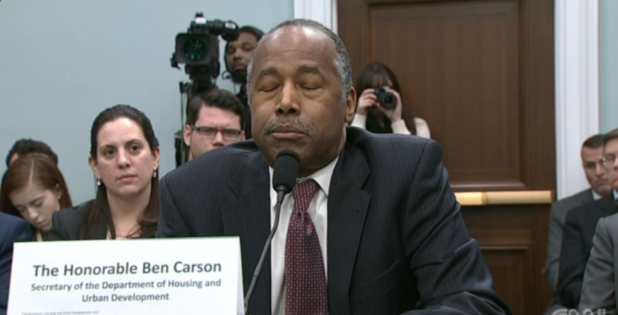 Carson was questioned at a House subcommittee hearing by Illinois Democratic Rep. Mike Quigley about the removal of HUD training materials to prevent LGBT discrimination in homeless shelters.