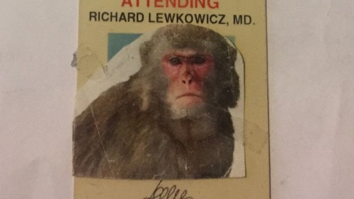“I have the Cardinal Cooke identification on one side and an old ID from another hospital on the other side. In the old ID, I slid a picture of a monkey.”