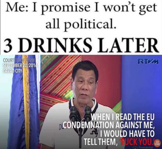 Duterte literally gives no fucks and is the most hardcore anti-degeneracy President of all time, anywhere.