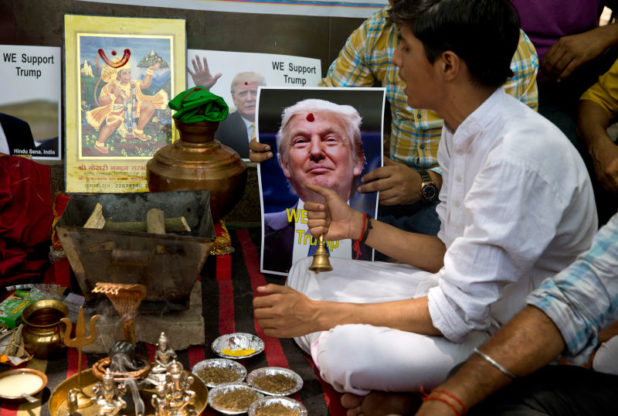 In yet another example of why we must get off the “racist” train and on the train of nationalism – these Indians worship Donald Trump as a GOD.
