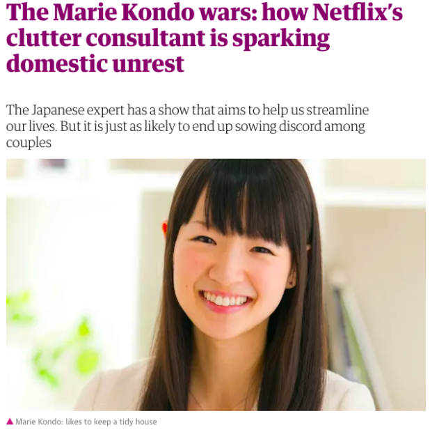 The show features Kondo going to American homes and teaching white women how to clean their house.