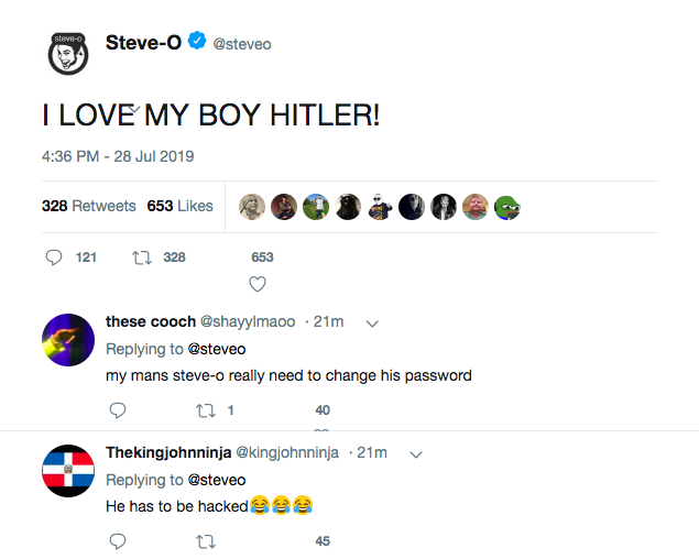 However, Steve-O probably got hacked. Probably.