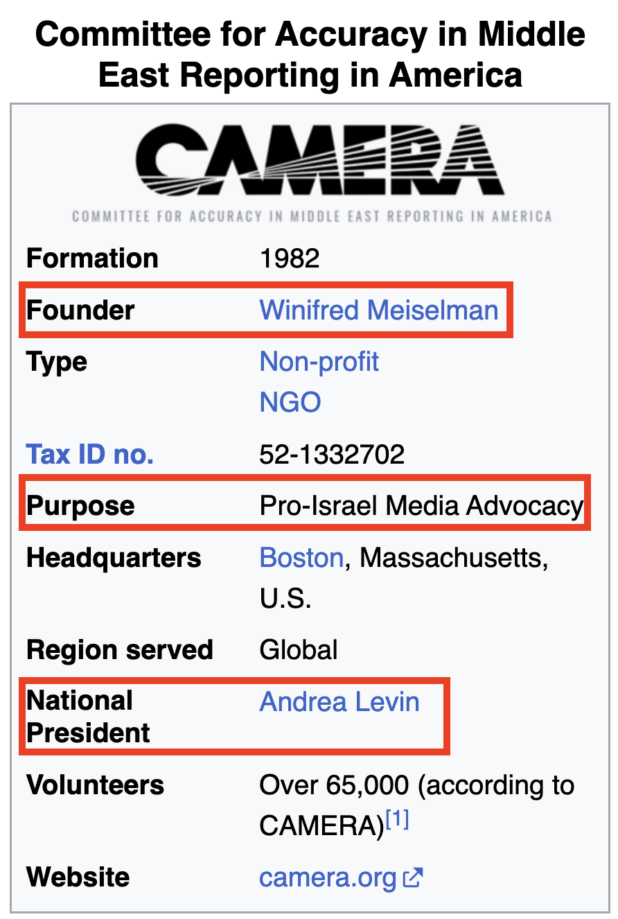 The outlet based it on a report by the watchdog Committee for Accuracy in Middle East Reporting and Analysis, or Camera, which identified the seven reportedly yanked from the air.