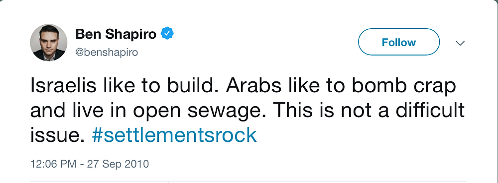 Do you remember the infamous Ben Shapiro tweet about the difference between Jews and Arabs?