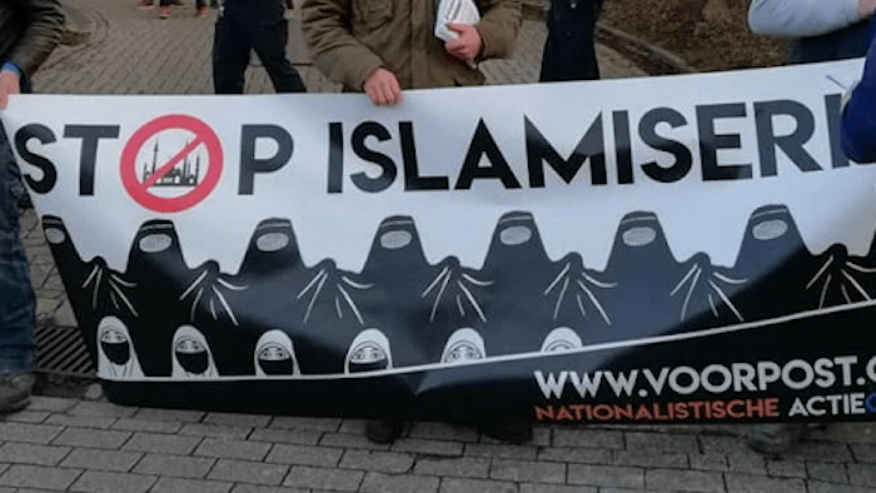The banner in question was held up at a protest in February of last year, reported Flemish news service VRT. The criminal court of Mechelen has sentenced four members of the conservative organization Voorpost for incitement of hate and violence during a protest in May 2020. On a banner under the words “Stop Islamization” were pictured some women in burkas or niqabs, and this combination, according to the court, went too far. Various Parliament members from Vlaams Belang have protested against the verdict in Mechelen.