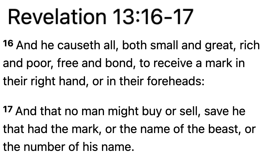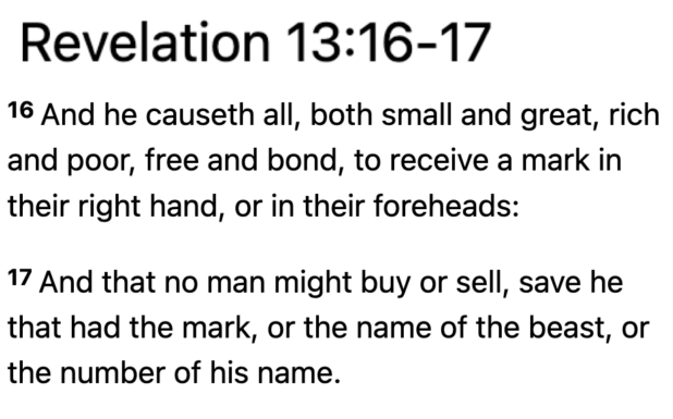 I want to go back and check the original Greek in the Revelation of John. When you are wearing a mask, and this device is scanning your face, is that not a “mark on your forehead”? I mean, if you lived in the first century AD, and you had a vision of these things scanning people’s faces (while they are wearing a mask, so it only scans their “forehead”), you might write “a mark on the forehead.”