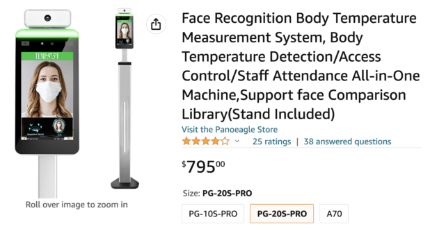 In one of the Amazon listings, it says “face recognition” as the first words. I think people have a hard time describing what this machine is. It’s sold as a laser thermometer, but it’s connected to wi-fi and scanning your face into a biometric system controlled by the government.