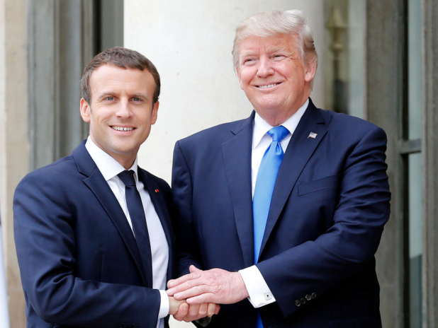 Macron, the president of France, clearly has a gay crush on Trump. He is so gaga over Trump that he basically imitates Trump on everything.