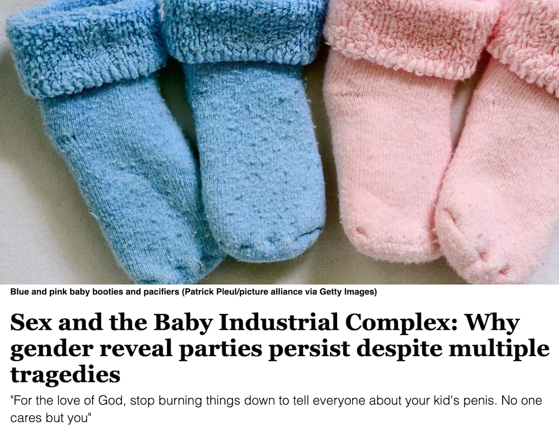 The media is joking about gender reveal parties.