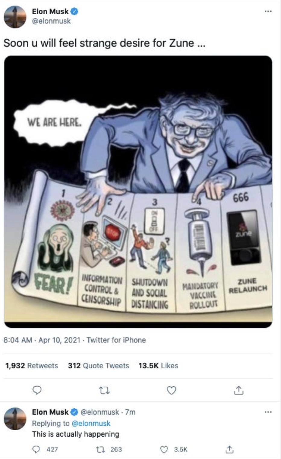 Remember when he tweeted that Bill Gates was trying to inject people with the Mark of the Beast?