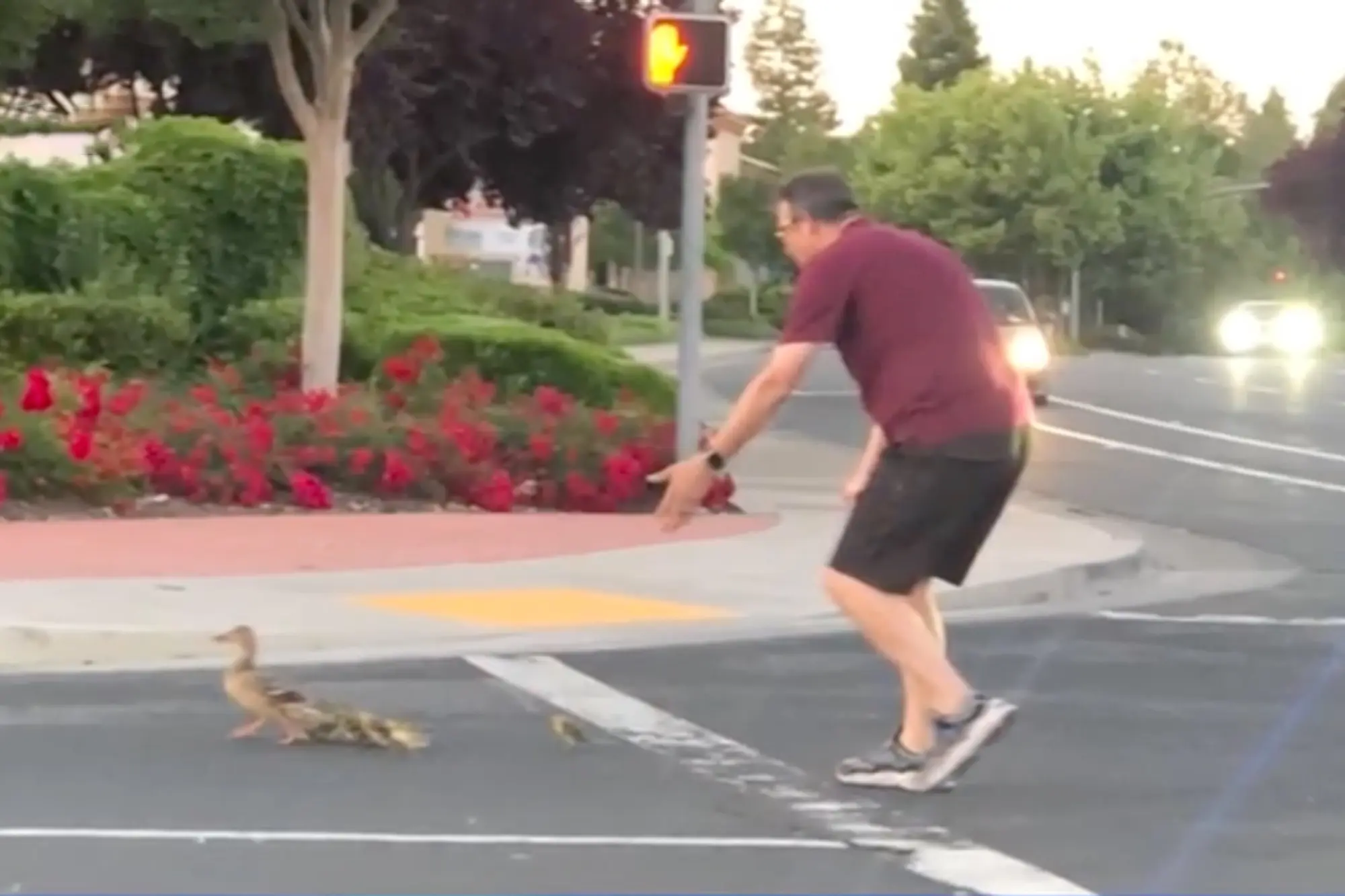 William Wimsatt, a 12-year-old boy who witnessed the kindhearted stranger’s actions, told KCRA 3 the man had stepped out of his car to help the ducks avoid traffic.