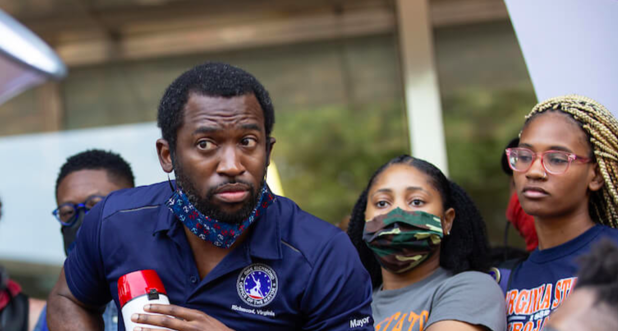 After a night of destructive protests in Richmond involving a torched dump truck, shattered windows, chemical agents and several arrests, Mayor Levar Stoney made a surprising claim.