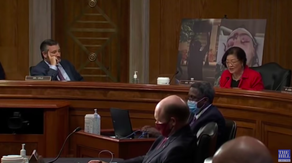 At a Senate Judiciary hearing this week, the strange Nipponese female Senator of Hawaii, Mazie Hirono, peddled the theory of secret white supremacist riot-starters, and demanded that President Donald Trump take action against them.