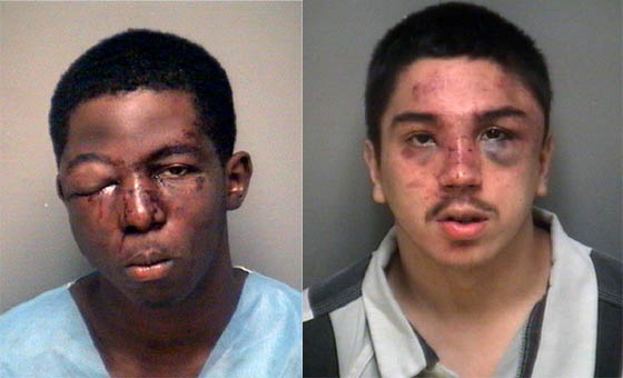 Calderon has a lot of bruising on his face, but he was not as badly injured as Gerald Allen. Allen’s right eye is swollen shut. Allen, 18, is facing a pair of attempted robbery charges.