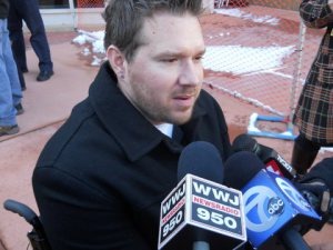 Firefighter Brendan Milewski was paralyzed while trying to extinguish the fire at a commercial building in Detroit in 2010. Many other firefighters were injured.