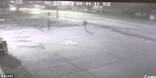 Indianapolis police have released chilling security footage that they claim shows ‘Red’ and ‘Duh-Duh’ following the beloved 24-year-old, before one of them ushers him off camera into a parking lot while the other stands in the street acting as a lookout.