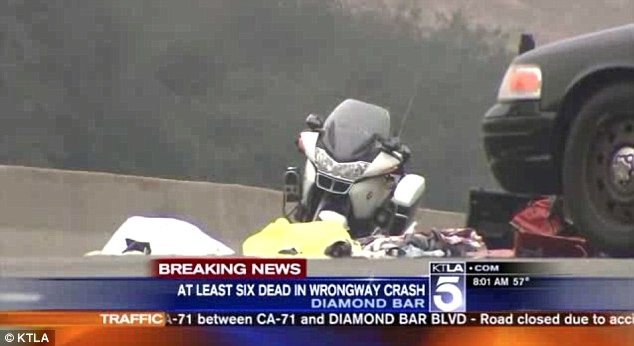 A family of four perished in massive 100mph pileup on a Californian highway today after a Camaro driving the wrong way down the freeway slammed head-on into a SUV near Diamond Bar.