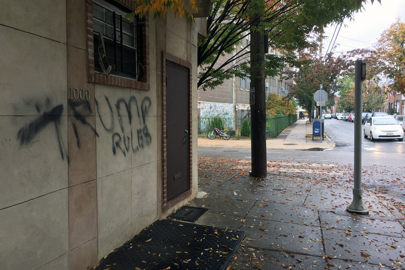 On that morning, residents on the block awoke to find racist and pro-Trump graffiti spray painted on their storefronts, cars and homes.