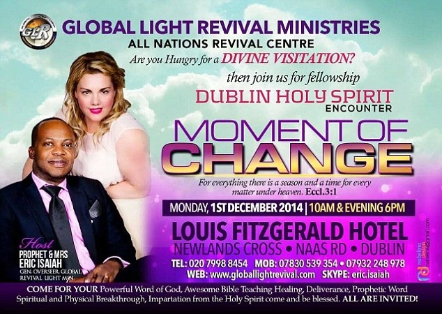 He has led sermons he describes as ‘divine visitation’ events across the UK and Ireland, receiving £1million in charitable donations in five years and giving sermons on religious satellite television channels.
