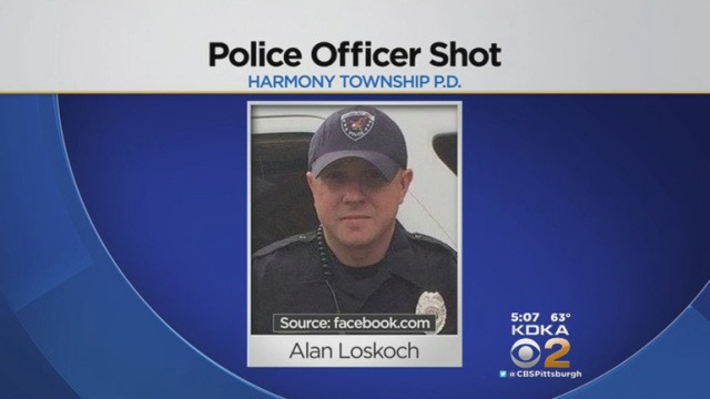 Hollins is accused of shooting Harmony Township Police Officer Alan Loskoch in the early morning hours of Wednesday. Loskoch had on a bulletproof vest that likely saved his life.