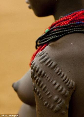 Now the stunning scar markings of Ethiopia and Sudan are the subject of an incredible set of photographs by French snapper, Eric Lafforgue, who travelled through the country observing cutting ceremonies and meeting the locals.